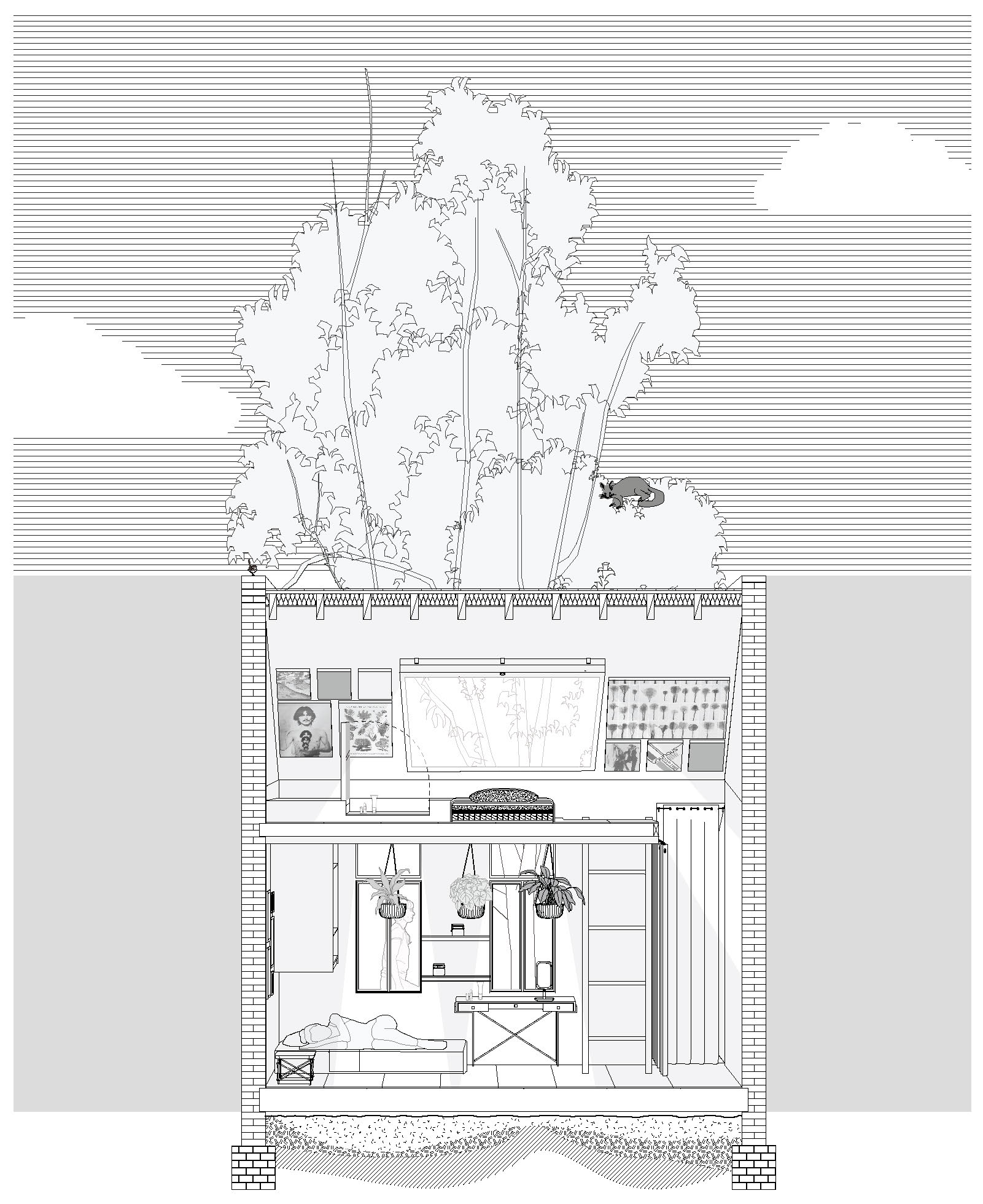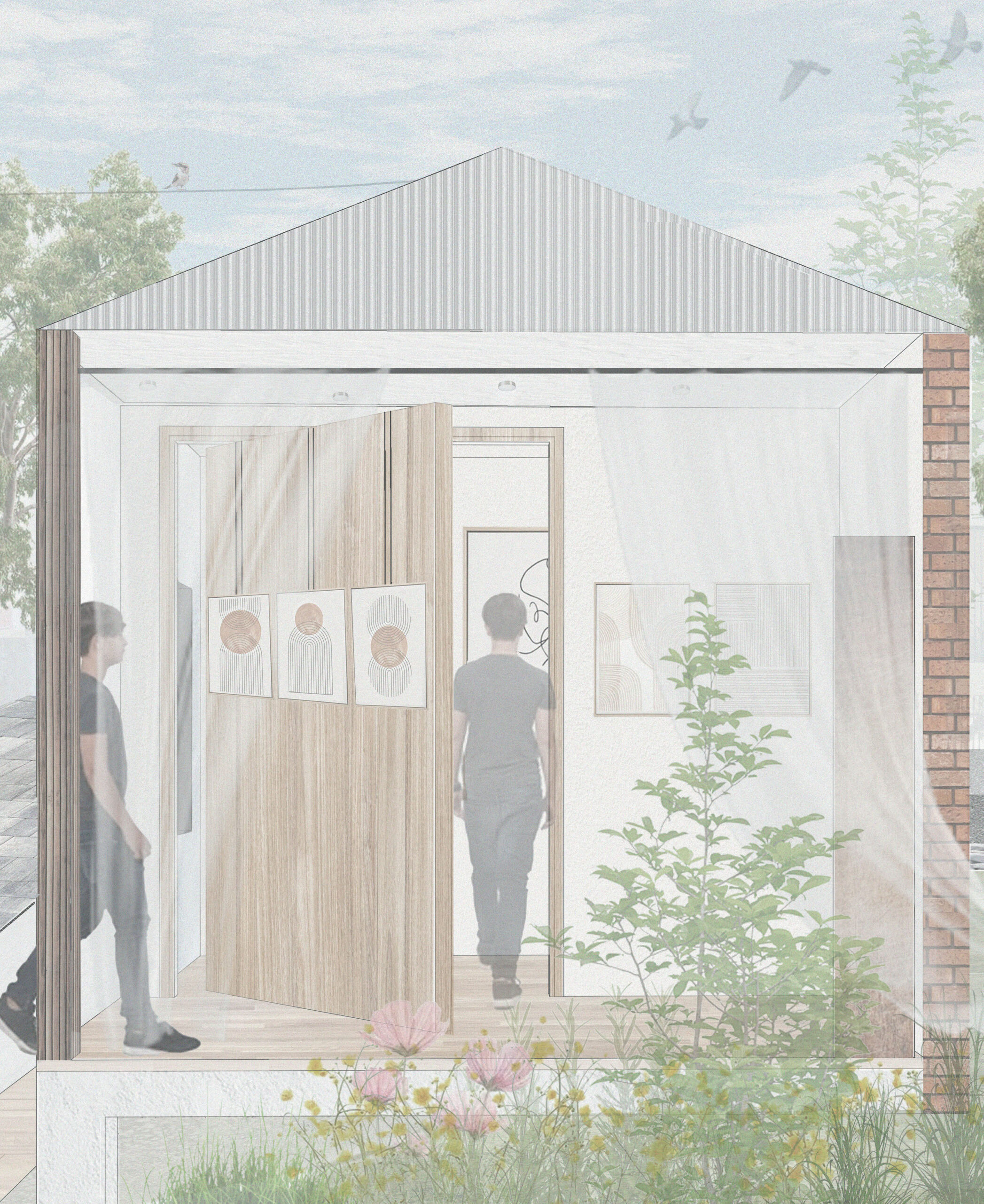 Studio 2 continues the spatial logic project from Studio 1, now applied to the domestic typology. Students commence AT1 with weekly charrettes, in teams of 3, experimenting with programmatic relationships of the home through the poche, points/lines/planes and organisational compositions (from precedent case studies). For AT2 + AT3, Students work individually on a real house typology in Sydney (Terrace/workers cottage, 1960s brick, Federation semi – each assigned a house across a nominated block) – performing Gordon Matta-Clark ‘incision decisions’ to rupture existing plan and hence household structure. Designing one renovation of alterations and additions. This allows the home to become flexible in response to the life-cycle of a chosen household brief – shared house, multi-generational or two household home.