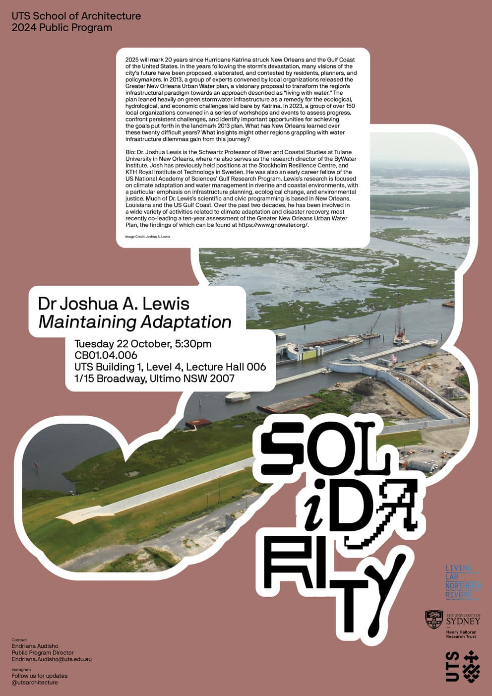 Lectures Maintaining Adaptation: Two Decades of Public Sensemaking around Urban Water Following Hurricane Katrina – Public Talk by Dr. Joshua A. Lewis October 22nd 2024